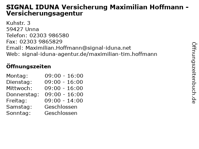 Branchen & Suchbegriffe zu SIGNAL IDUNA Versicherung Maximilian Hoffmann - Versicherungsagentur:hoffmann, iduna, maximilian, signal, versicherung, versicherungsagentur |