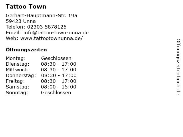 | Öffnungszeiten Tattoo Town in Unna anzeigen | |
