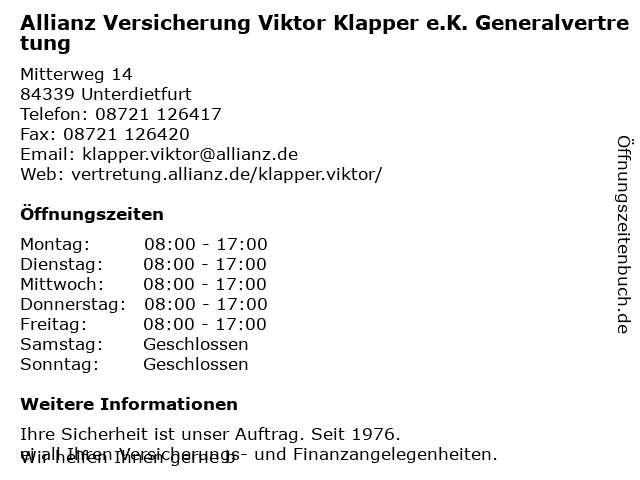 Branchen & Suchbegriffe zu Allianz Versicherung Viktor Klapper e.K. Generalvertretung:allianz, altersvorsorge, autoversicherung, berufshaftpflichtversicherung, berufsunfähigkeitsversicherung, e.k., gebäude- und hausratsversicherung, generalvertretung, gewerbeversicherung, klapper, lebensversicherung, pflegeversicherung, versicherung, viktor |