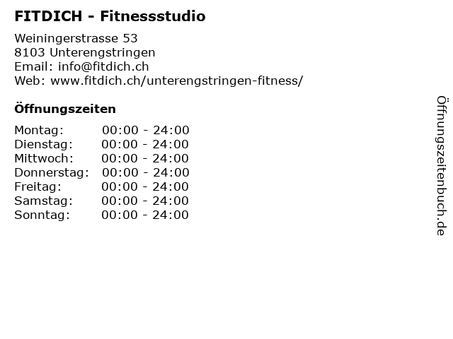 | Öffnungszeiten FITDICH - Fitnessstudio in Unterengstringen anzeigen | |