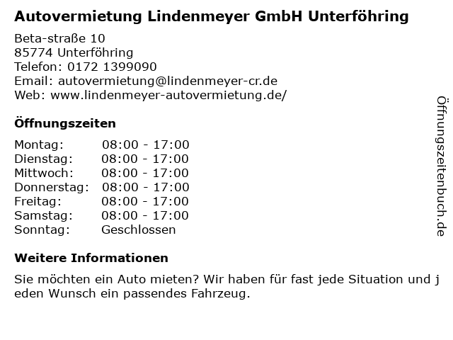Branchen & Suchbegriffe zu Autovermietung Lindenmeyer GmbH Unterföhring:autovermietung, lindenmeyer, unterföhring |