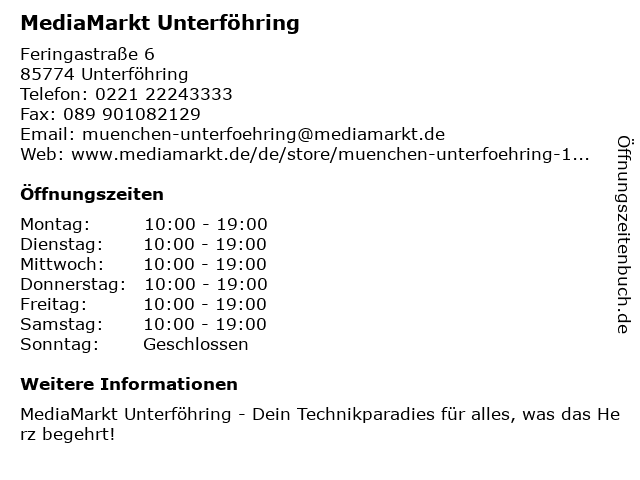Öffnungszeiten MediaMarkt Unterföhring in Unterföhring anzeigen | |