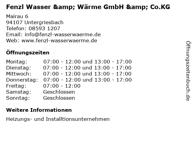 Branchen & Suchbegriffe zu Fenzl Wasser & Wärme GmbH & Co.KG:co.kg, fenzl, hlk-montage, ingenieur, klempner, sanitärservice, wasser, wärme |
