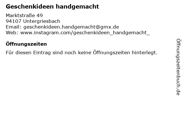 | Öffnungszeiten Geschenkideen handgemacht in Untergriesbach anzeigen | |