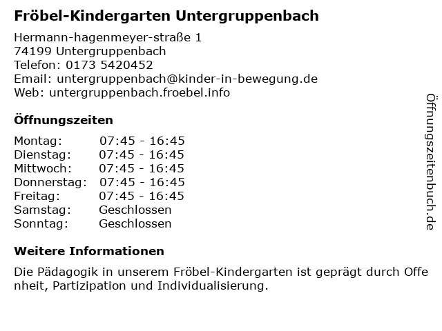 Branchen & Suchbegriffe zu Fröbel-Kindergarten Untergruppenbach:fröbel, kindergarten, kindertagesstätte, untergruppenbach, vorschule |