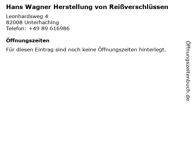 | Hans Wagner Herstellung von Reißverschlüssen anrufen | |