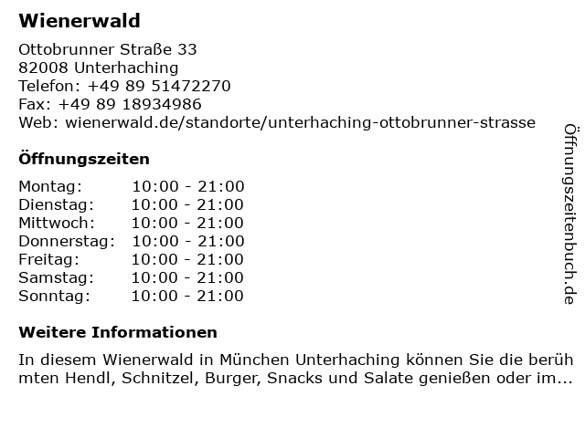 | Öffnungszeiten Wienerwald in Unterhaching anzeigen | |