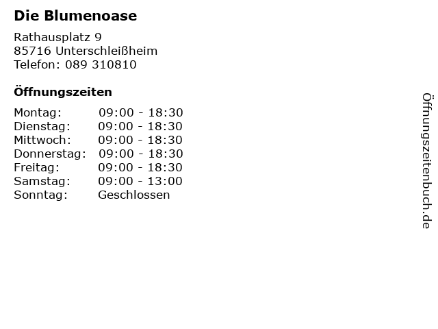 | Öffnungszeiten Die Blumenoase in Unterschleißheim anzeigen | |
