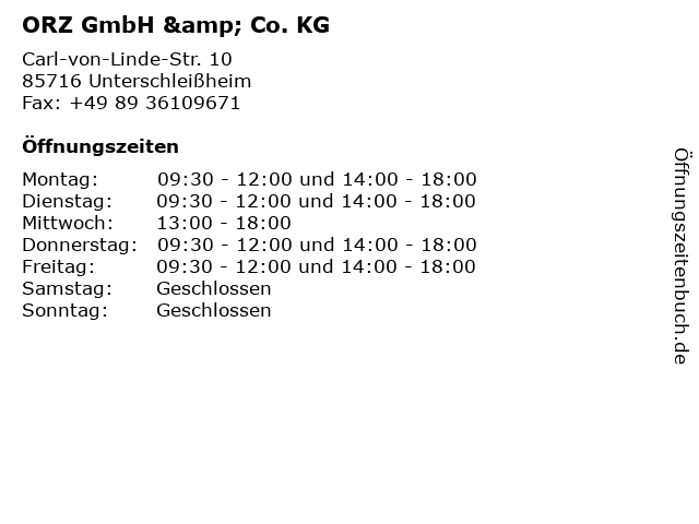 | Öffnungszeiten ORZ GmbH & Co. KG in Unterschleißheim anzeigen | |