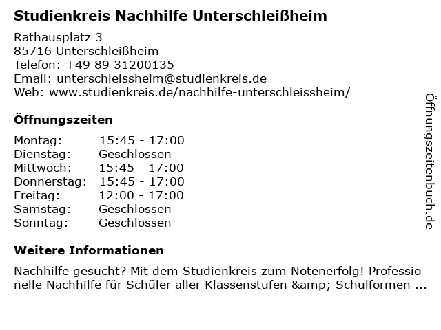 Branchen & Suchbegriffe zu Studienkreis Nachhilfe Unterschleißheim:bildung, kurse, lernen, lernhilfe, nachhilfe, nachhilfelehrer, prüfungsvorbereitung, schule, schülernachhilfe, studienkreis, unterricht |
