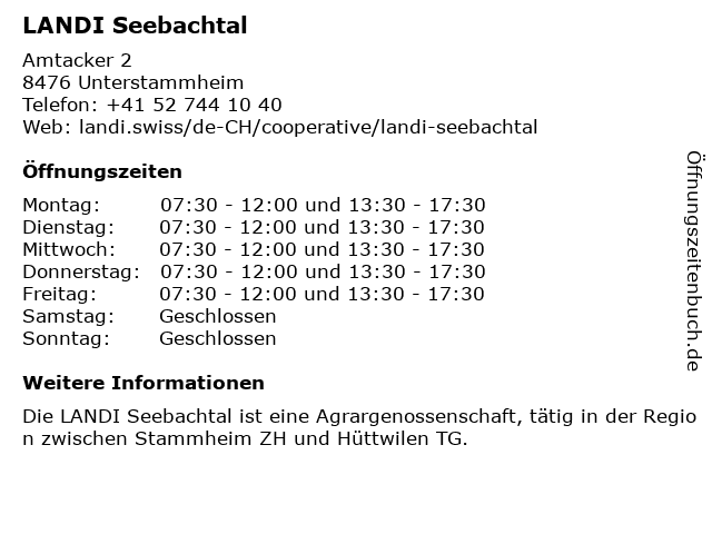 | Öffnungszeiten LANDI Seebachtal in Unterstammheim anzeigen | |