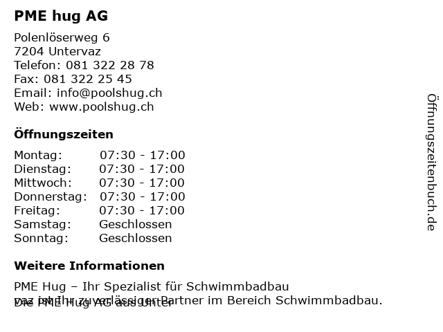 | Öffnungszeiten PME hug AG in Untervaz anzeigen | |