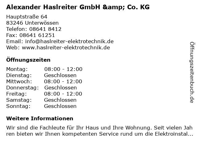 Branchen & Suchbegriffe zu Alexander Haslreiter GmbH & Co. KG:alexander, anbieter für brandschutzsysteme, elektrowarengeschäft, haslreiter, klimaanlagenmontage, solartechnik |