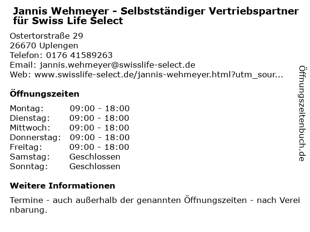 Branchen & Suchbegriffe zu Jannis Wehmeyer - Selbstständiger Vertriebspartner für Swiss Life Select:berufshaftpflichtversicherung, berufsunfähigkeitsversicherung, finanzplanung, gebäude- und hausratsversicherung, investmentservice, jannis, lebensversicherung, life, mietrechtsschutzversicherung, pflegeversicherung, selbstständiger, select, swiss, versicherungsberater, vertriebspartner, wehmeyer |
