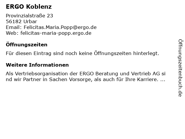 Öffnungszeiten ERGO Koblenz in Urbar anzeigen | |
