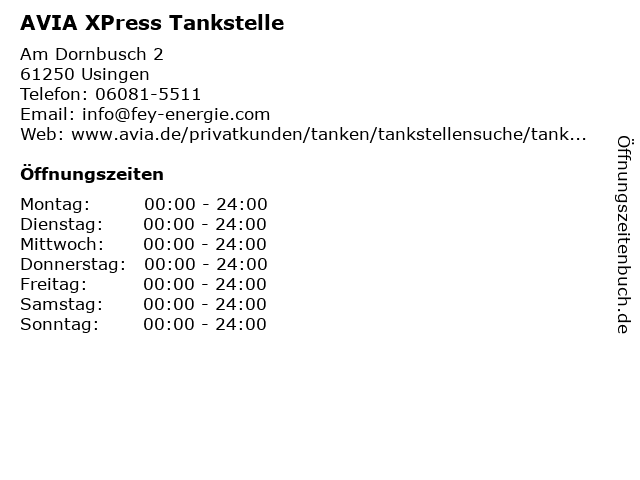 | Öffnungszeiten AVIA XPress Tankstelle in Usingen anzeigen | |