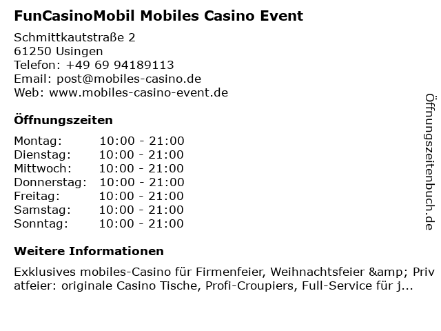 Branchen & Suchbegriffe zu FunCasinoMobil Mobiles Casino Event:casino, casino mieten, casino-event, casinoabend, event, events, eventservice, feier, firmenfeier, funcasinomobil, incentive, jubiläum, messestand, mobiles, mobiles-casino, party, privatfeier, sommerfest, teambuilding, veranstaltung, weihnachtsfeier |