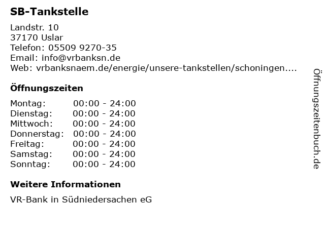 | Öffnungszeiten SB-Tankstelle in Uslar anzeigen | |