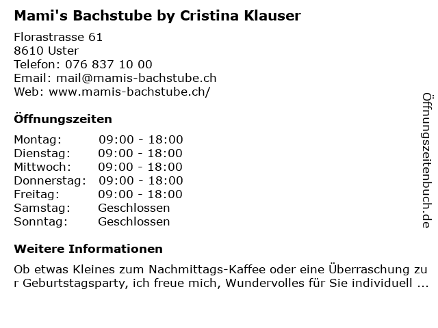 Branchen & Suchbegriffe zu Mami's Bachstube by Cristina Klauser:bachstube, by, cristina, event-planer, klauser, mami's, süßigkeitenladen |
