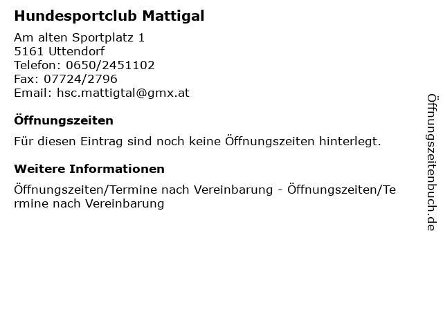 | Öffnungszeiten Hundesportclub Mattigal in Uttendorf anzeigen | |