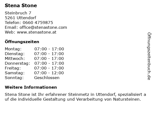 | Öffnungszeiten Stena Stone in Uttendorf anzeigen | |