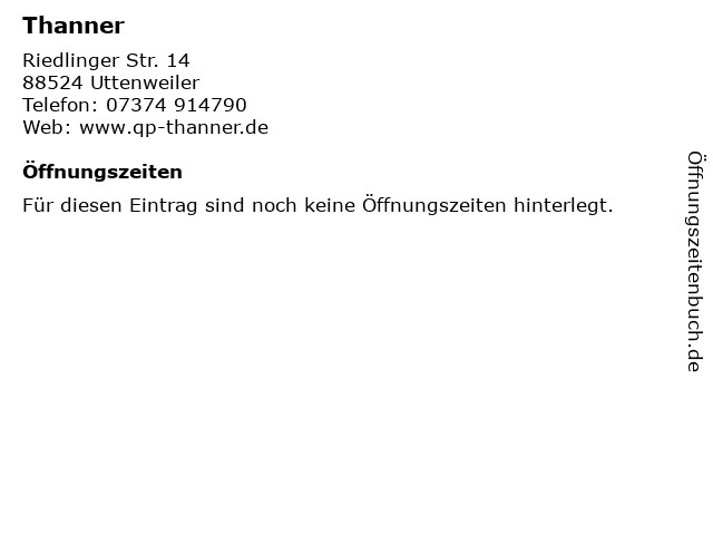 | Öffnungszeiten Thanner in Uttenweiler anzeigen | |