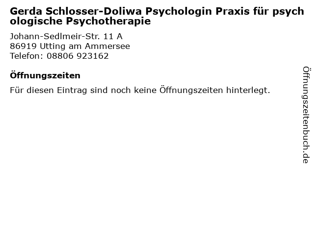 | Gerda Schlosser-Doliwa Psychologin Praxis für psychologische Psychotherapie anrufen | |