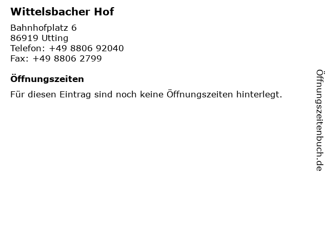 | Öffnungszeiten Wittelsbacher Hof in Utting anzeigen | |