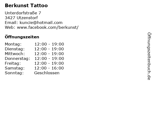 | Öffnungszeiten Berkunst Tattoo in Utzenstorf anzeigen | |