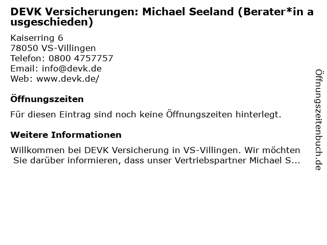 | DEVK Versicherungen: Michael Seeland (Berater*in ausgeschieden) anrufen | |