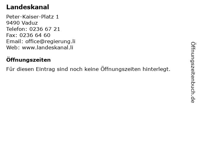 | Öffnungszeiten Landeskanal in Vaduz anzeigen | |