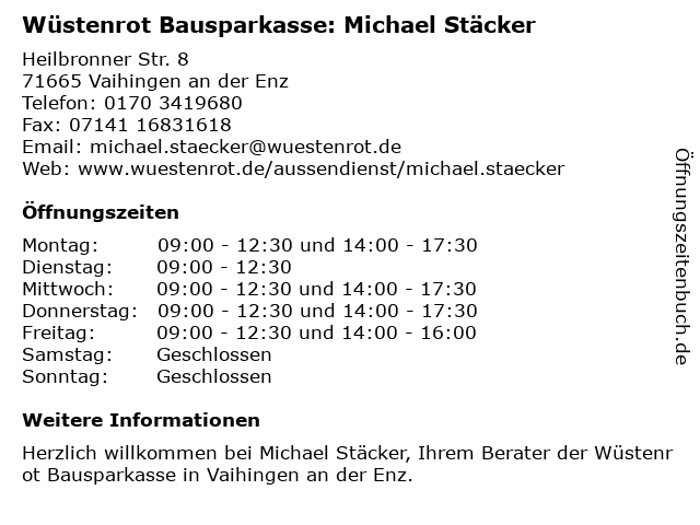 Branchen & Suchbegriffe zu Wüstenrot Bausparkasse: Michael Stäcker:bausparkasse, michael, stäcker, wüstenrot |