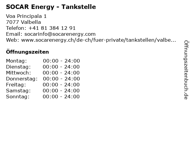 | Öffnungszeiten SOCAR Energy - Tankstelle in Valbella anzeigen | |