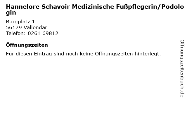 | Hannelore Schavoir Medizinische Fußpflegerin/Podologin anrufen | |