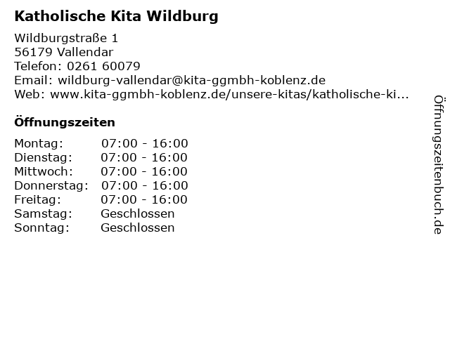 | Öffnungszeiten Katholische Kita Wildburg in Vallendar anzeigen | |
