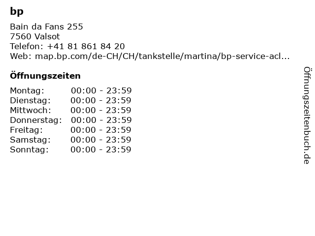 | Öffnungszeiten bp in Valsot anzeigen | |
