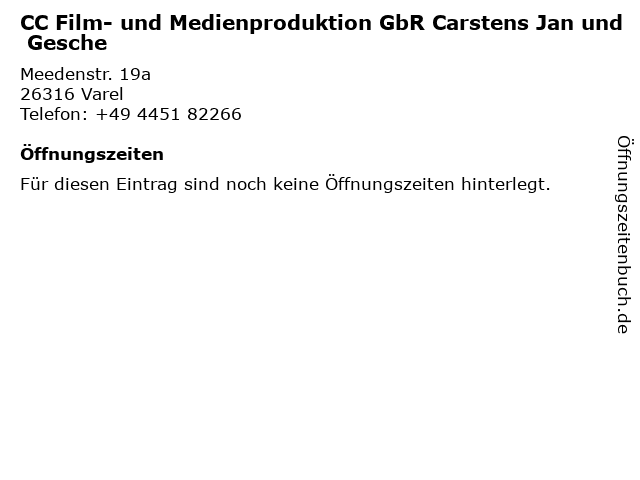 | CC Film- und Medienproduktion GbR Carstens Jan und Gesche anrufen | |