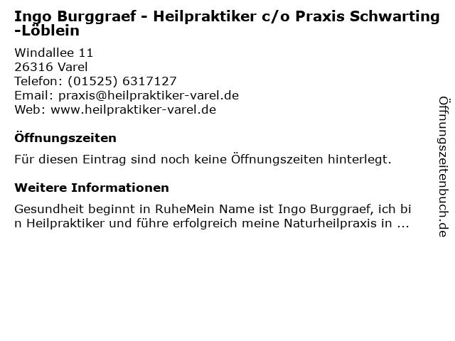 | Ingo Burggraef - Heilpraktiker c/o Praxis Schwarting-Löblein anrufen | |