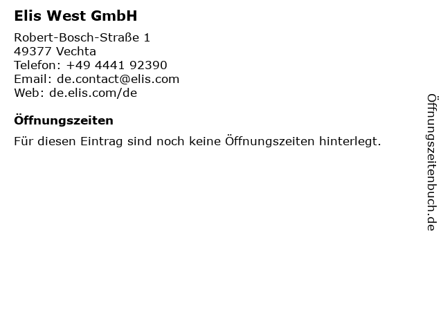 | Öffnungszeiten Elis West GmbH in Vechta anzeigen | |