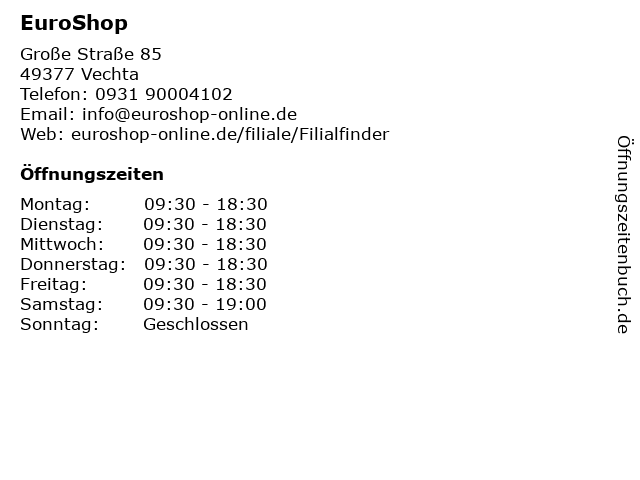 | Öffnungszeiten EuroShop in Vechta anzeigen | |
