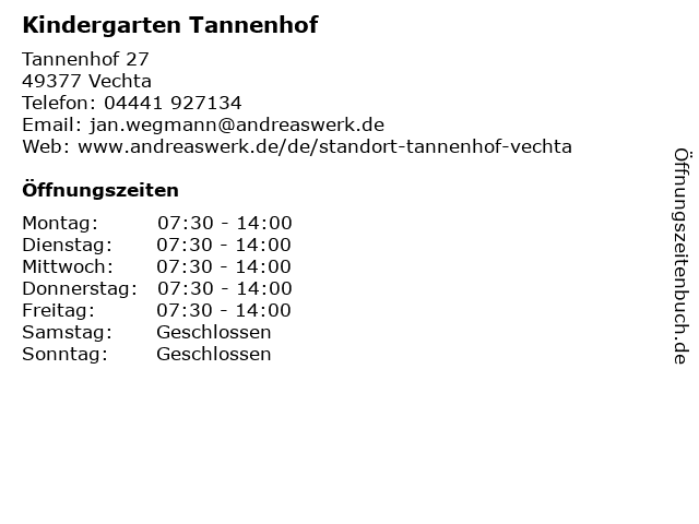 | Öffnungszeiten Kindergarten Tannenhof in Vechta anzeigen | |
