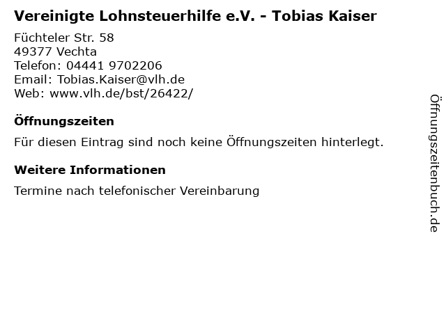 | Vereinigte Lohnsteuerhilfe e.V. - Tobias Kaiser anrufen | |
