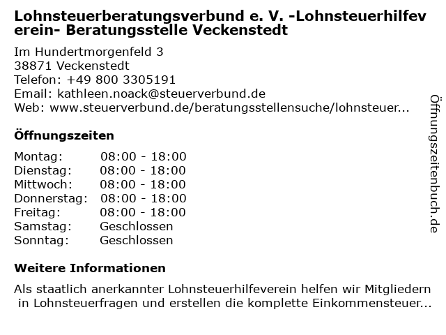 Branchen & Suchbegriffe zu Lohnsteuerberatungsverbund e. V. -Lohnsteuerhilfeverein- Beratungsstelle Veckenstedt:beratungsstelle, e., einkommensteuererklärung, lohnsteuerberatungsverbund, lohnsteuererklärung, lohnsteuerhilfe veckenstedt, lohnsteuerhilfeverein, lohnsteuerhilfeverein veckenstedt, lohnsteuerjahresausgleich, steuerberater, steuererklärung, steuerhilfe, steuerverbund, v., veckenstedt |