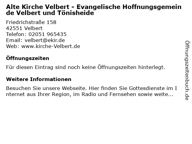 | Alte Kirche Velbert - Evangelische Hoffnungsgemeinde Velbert und Tönisheide anrufen | |