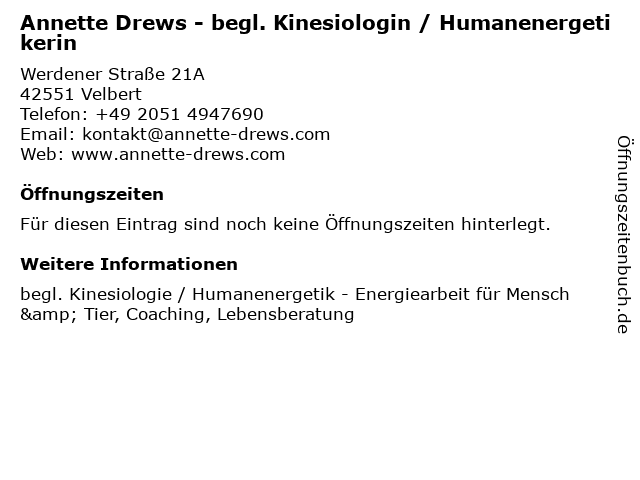 | Annette Drews - begl. Kinesiologin / Humanenergetikerin anrufen | |