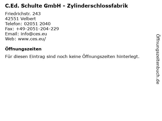 | C.Ed. Schulte GmbH - Zylinderschlossfabrik anrufen | |