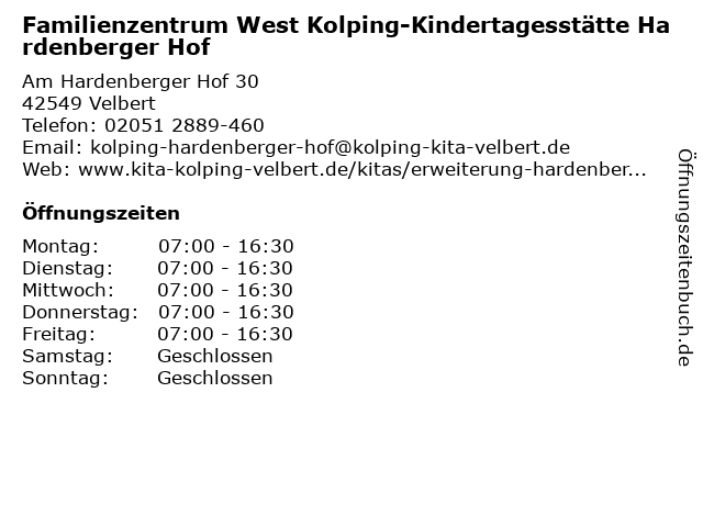 1 Familienzentrum West Kolping-Kindertagesstätte Bartelskamp (Entfernung: 0,14 km) Bartelskamp 58, 42549 Velbert 3 Familienzentrum West Kolping-Kindertagesstätte Lummerland (Entfernung: 1,10 km) Am Thekbusch 2d, 42549 Velbert 4 Familienzentrum Kolping-Kindertagesstätte Kastanienallee (Entfernung: 1,30 km) Kastanienallee 19-21, 42549 Velbert 6 |