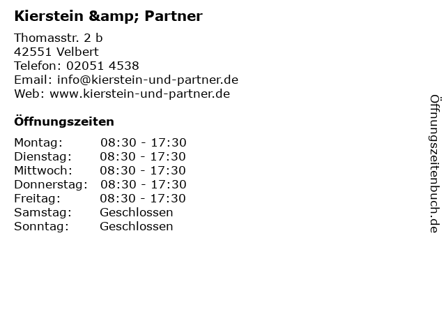 Öffnungszeiten Kierstein & Partner in Velbert anzeigen | |