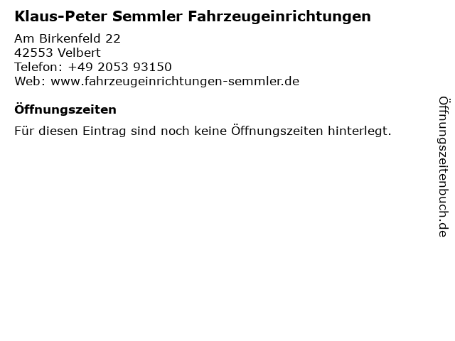 | Klaus-Peter Semmler Fahrzeugeinrichtungen anrufen | |