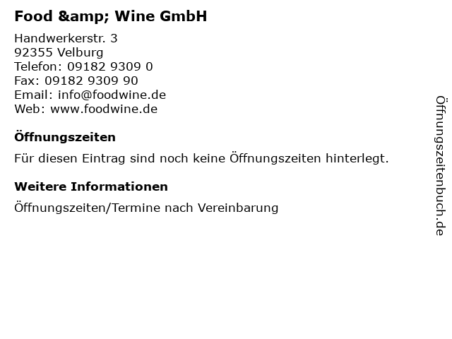 | Adresse Food & Wine GmbH in Velburg anzeigen |
